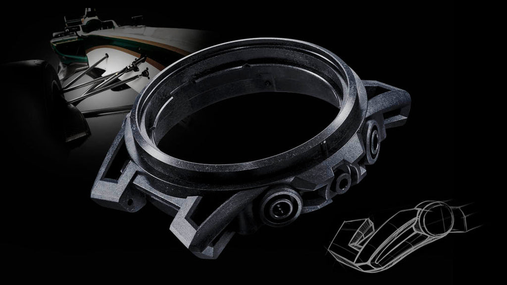Based on the EDIFICE SOSPENSIONE ECB-2000, the watch employs carbon materials for the bezel and carbon fiber-reinforced resin for the case, which features a unique design inspired by the four-arm suspension used in race cars.Â